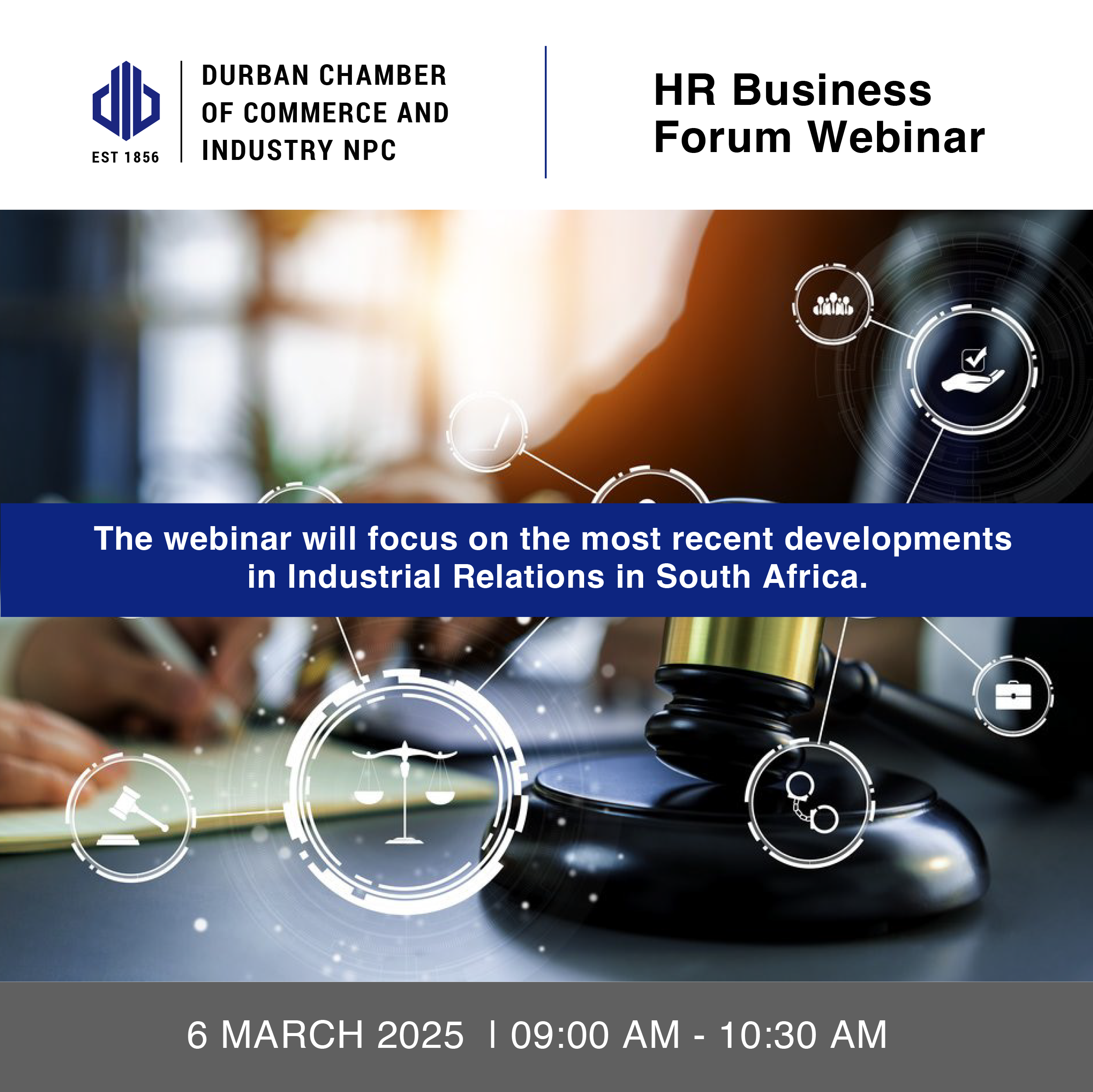 Join the Durban Chamber of Commerce and Industry for its HR Business Forum Webinar on the