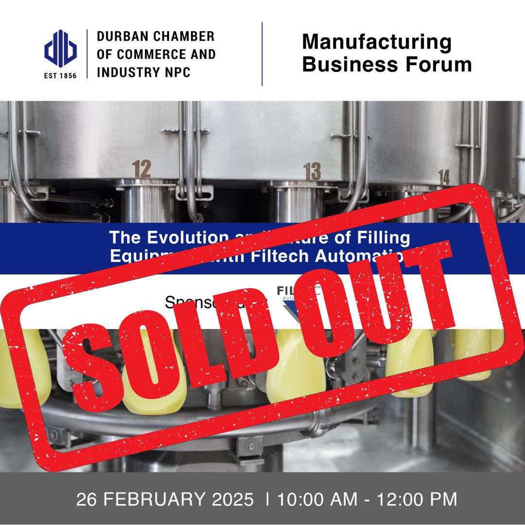 The Durban Chamber of Commerce and Industry NPC is pleased to invite you to our upcoming Manufacturing Business Forum Meeting, in partnership with Filtec Automation. Filtec Automation is a leading manufacturing company with 27 years of experience, specialising in bottle filling, capping, and labelling machinery.